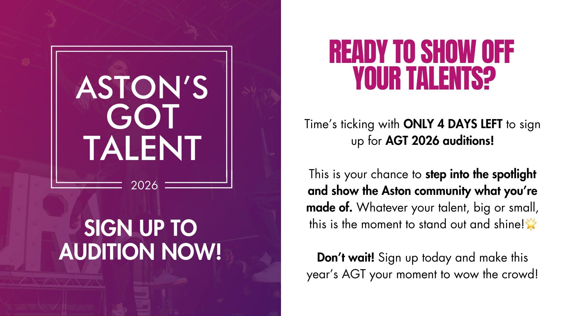 From Election Nominations to Aston’s Got Talent, there’s plenty to get involved in and discover!
